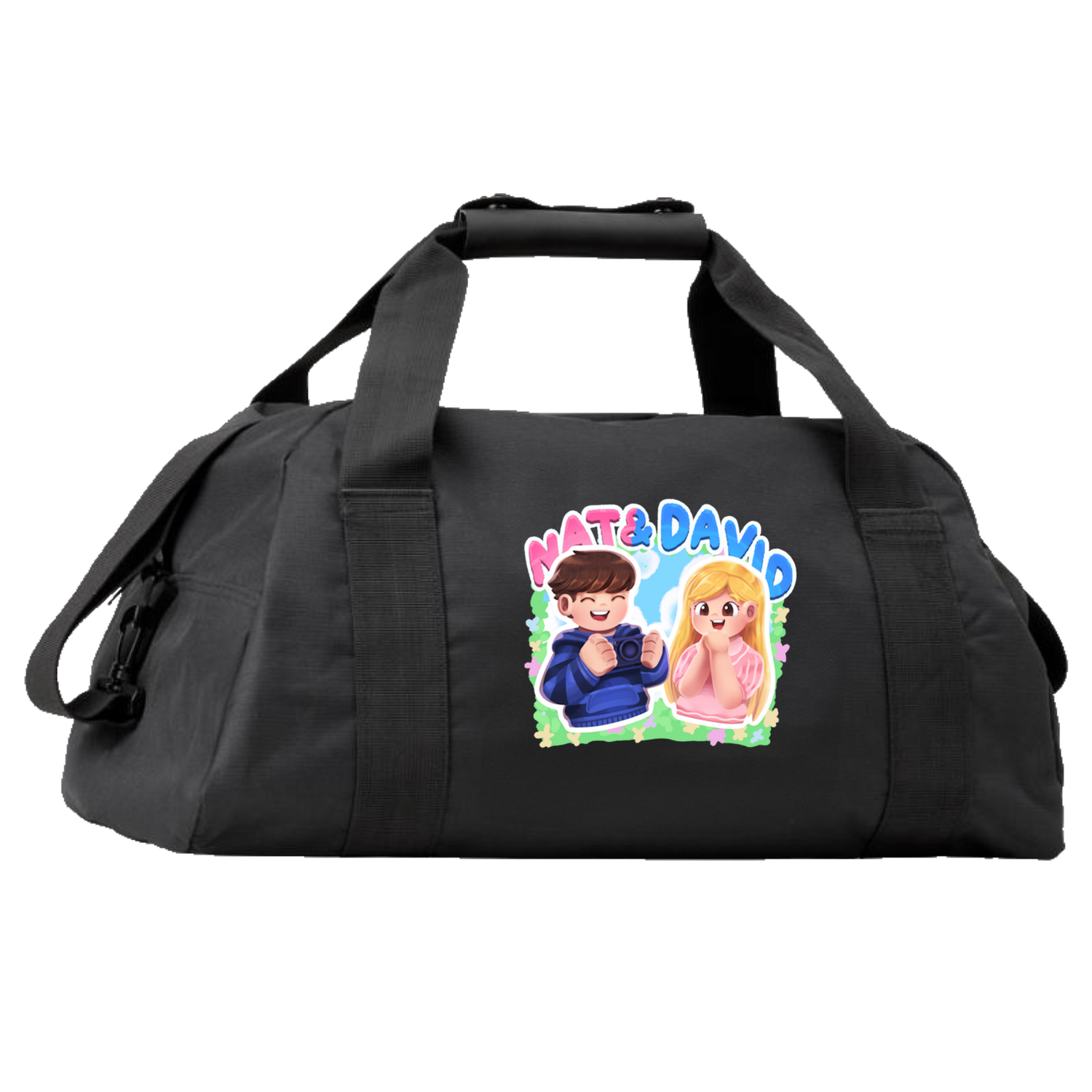 Gör träning, fritid och resor lite roligare med den officiella Nat&David sportväskan ! Denna väska är skapad för fans av Natasja och David , som älskar deras gemensamma kanal fylld med roliga videor och massor av bra energi. Med en snygg design som representerar Nat&Davids universum är denna sportväska både praktisk och perfekt för alla som vill ta med sig en del av sin gemenskap! 🎉✨