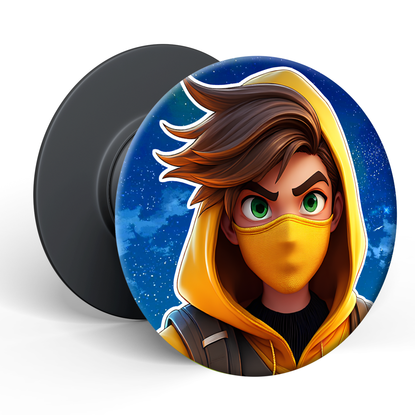 Snygg design: Med GoldenJs figur på framsidan är vår Pop Holder inte bara funktionell, utan också ett snyggt tillbehör för alla Fortnite-fans.