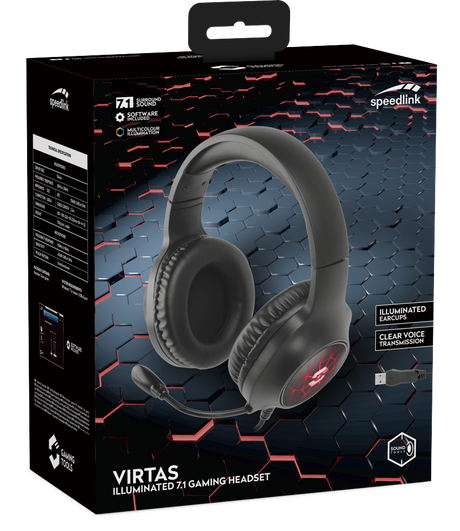 Speedlink - VIRTAS Illuminated 7.1 Gaming Headset, svart