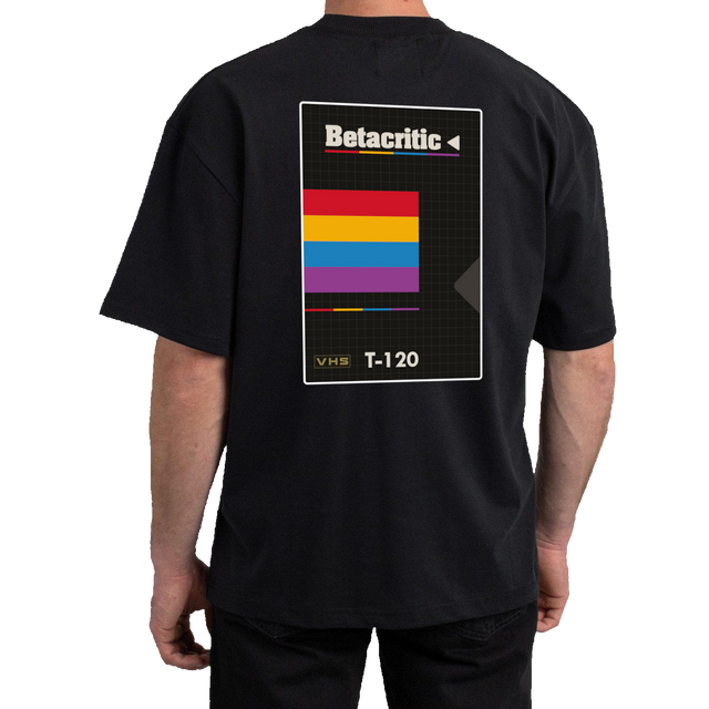 • Ryg: Stort full-back VHS-design med farvebjælker og Betacritic Logo