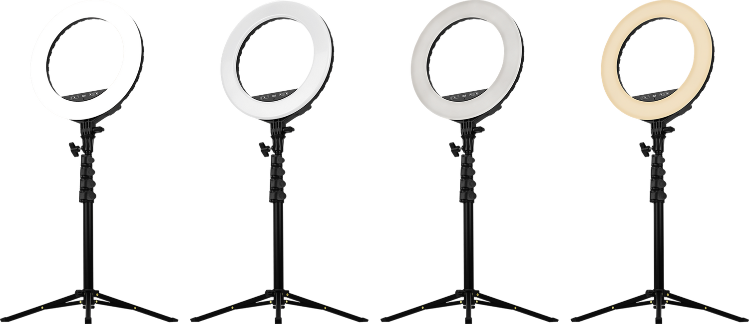 Takket være dette ringlys kan du justere din belysning til dit nuværende humør eller ønskede stemning. Du kan indstille farvetemperaturen i et område fra 3.000 til 6.000 Kelvin, hvilket får lyset til at se koldt eller varmt ud. Ved hjælp af den integrerede kontakt kan du styre ringlysets lysstyrke og farve med et enkelt tryk på en knap.