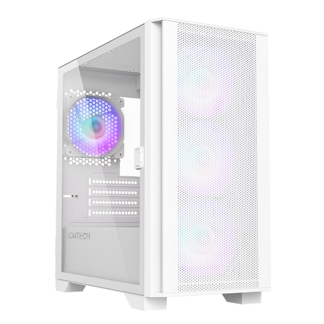 Montech Air 100 ARGB White - Micro ATX, Tempered glass, 4x ARGB fans included