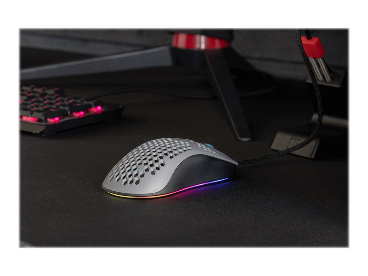 | Egenskaber | Rullehjul, omstillelig opløsning, flettet kabel, Pixart 3389 optisk sensor, RGB-bagbelysning, Omron 20M kontakter |