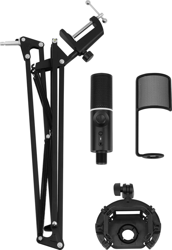 Derudover får du en topmoderne streamingmikrofon, der leverer krystalklar lyd og gør din stemme hørbar og tydelig for dine seere. Den medfølgende justerbare arm gør det nemt at placere mikrofonen i den optimale position for optimal lydkvalitet.