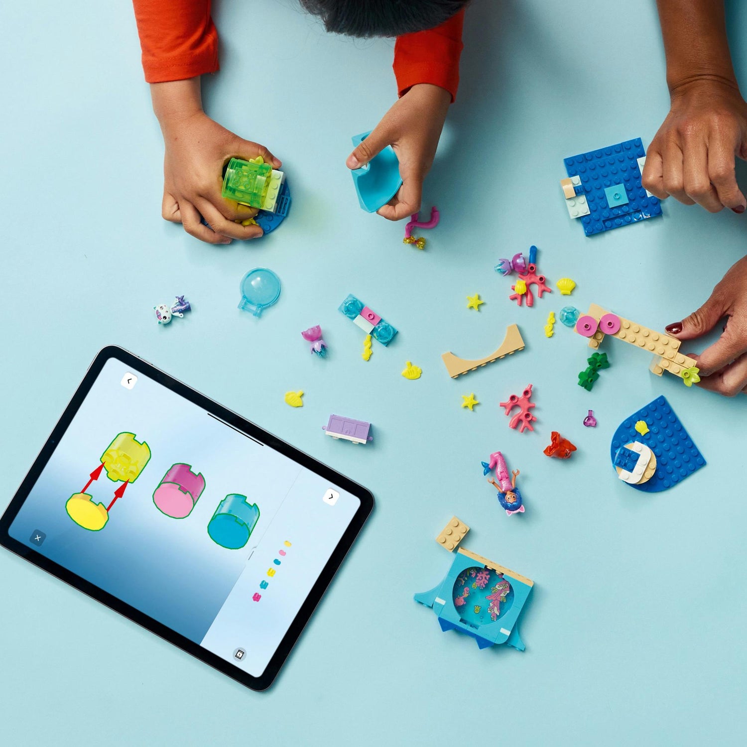 Bygge- og legesæt til børn – Der er masser at opdage, bl.a. skaller, planter, havvæsner, en rutsjebane, en kæmpe boble, som figurerne kan "flyde" i, og koraller, der kan flyttes for at afsløre en skattekiste