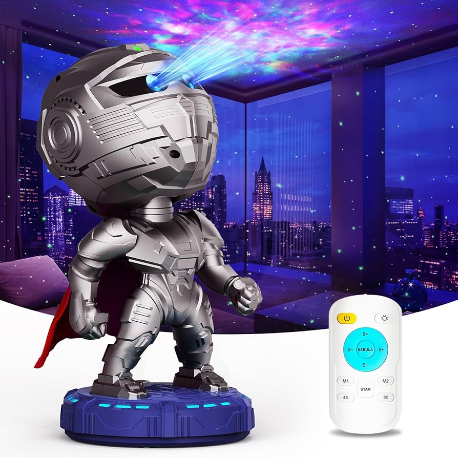 Giv dit hjem et strejf af kosmisk eventyr med MECHARITE - Super Helt Stjerne Projektor – hvor lys og heltemod mødes i skøn harmoni!