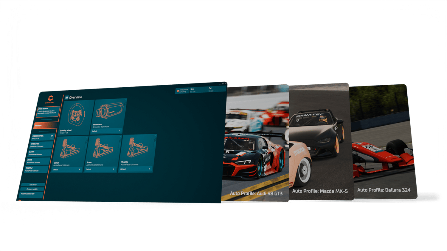 • Styring: Simucube TrueDrive-software (USB-forbindelse)