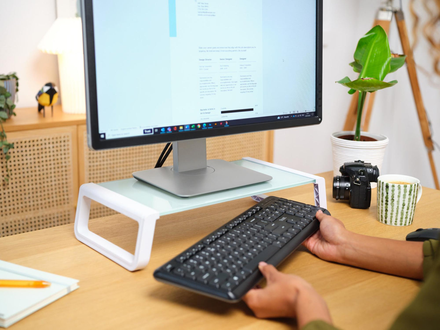 Med sit minimalistiske hvide design passer Trust Monta Glass Monitor Stand perfekt ind i ethvert hjemmekontor, gaming-setup eller moderne arbejdsplads, hvor funktionalitet og stil går hånd i hånd.