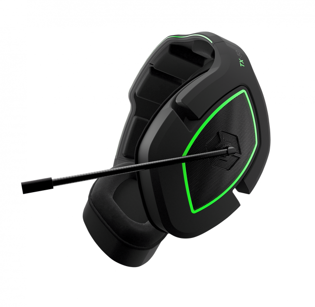 TX-50 RF kombinerer den stilede Black/Green farvekombination med praktisk funktionalitet. Den taktile gummifinish giver et sikkert greb, mens de bløde Alcantara-puder sikrer komfort gennem selv de længste gaming-sessioner. Mikrofonen kan roteres væk, når du spiller single-player, og den flettede kabelkonstruktion modstår hverdagens slitage bedre end standardkabler.